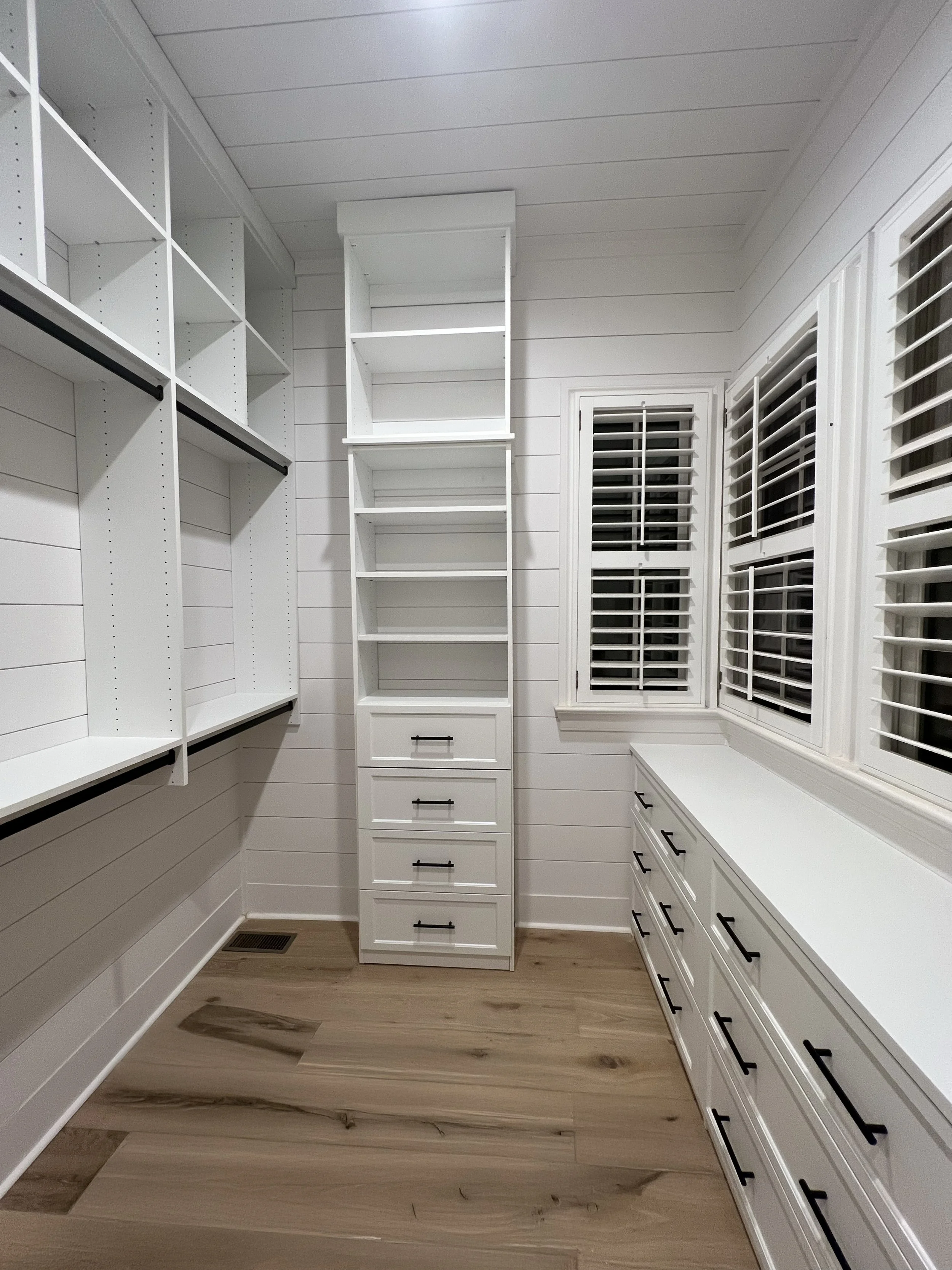 Do you shut the door and hide your “stuff” in the laundry or utility room? Do you wish you had that boot bench by the garage to keep your kids organized? Cooper Designs can take those spaces in your home and create a system to meet your storage needs; storage for muddy shoes and wet jackets to shelves for your laundry products and cabinetry to keep things out of sight like your bulk storage. We will help create just what you need to conquer the clutter in every area of the home including laundry rooms, mud rooms, utility rooms, playrooms. You name the space; we have an organizing solution for you!